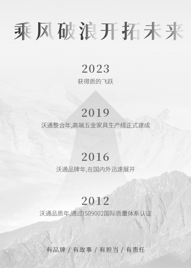 沃通五金將積極弘揚中國家具文化,綜合國際家具潮流,運用無限的創(chuàng)意,設(shè)計生產(chǎn)出大量造型美觀,引領(lǐng)時代潮流的新產(chǎn)品。